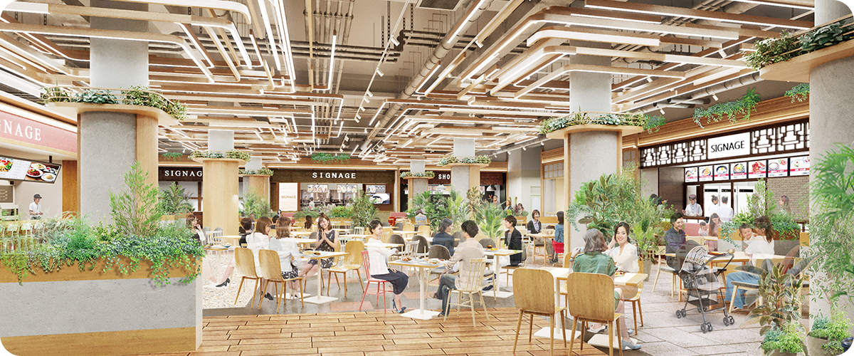 - 約1,000席の客席と多彩な22店舗が