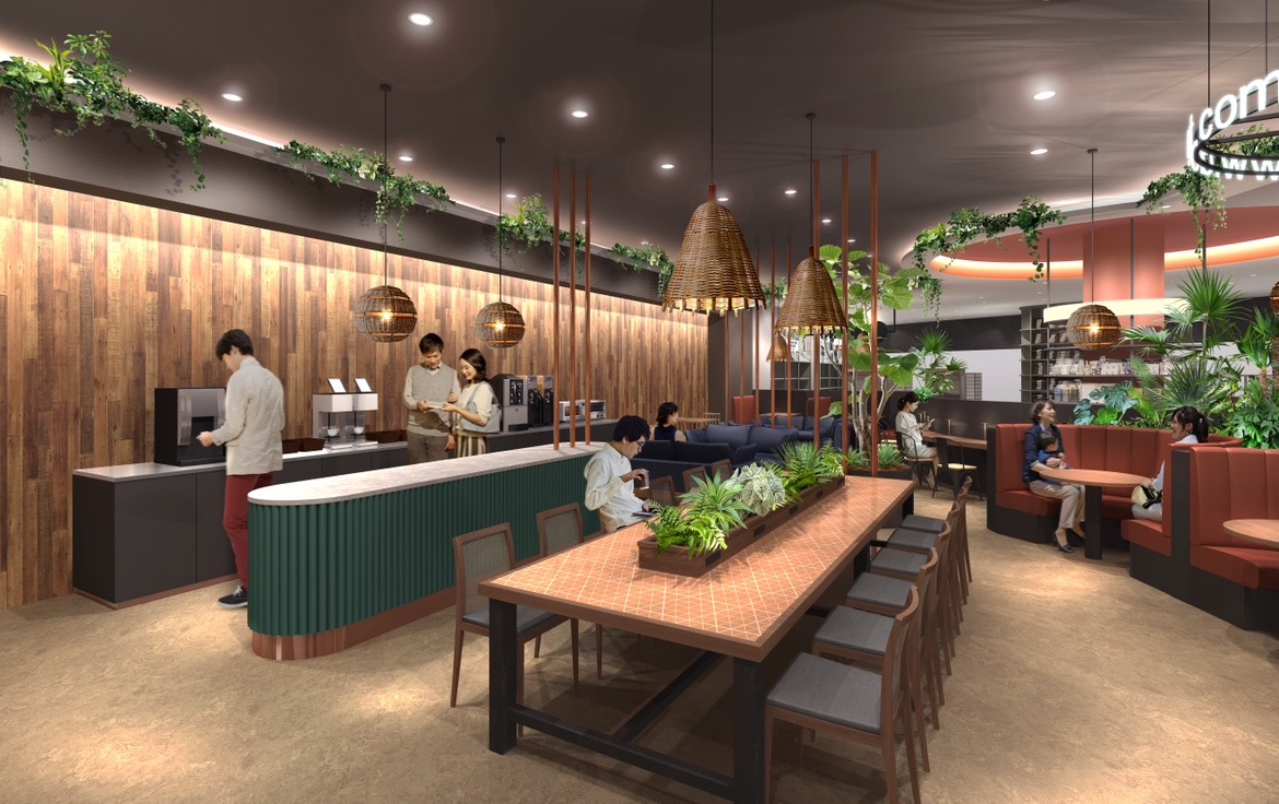 気軽に利用できるカフェ&ワークスペースも完備。