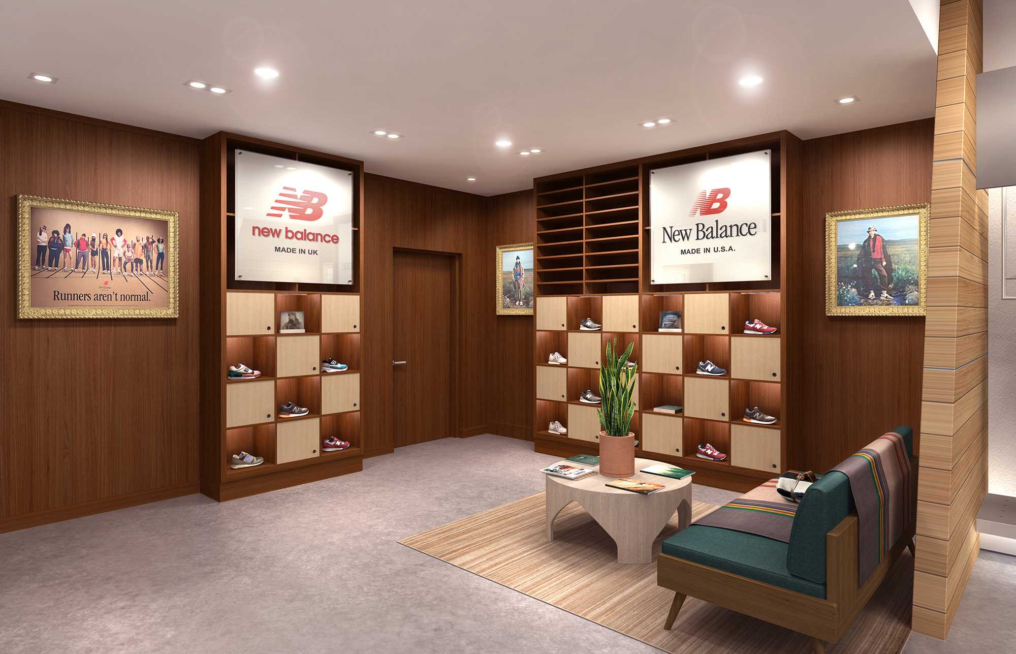 店舗での体験を新しくデザインし、中心に“商品”ではなく“人”を据えています。売り場に象徴的に設置したコミュニティサークルを中心に空間を作り、スタッフとお客様、そしてお客様同士のコミュニケーションが自然に生まれるように設計しています。人々が集い、互いにインスピレーションを得ながら、自分らしいスタイルを見つけることを目指した店舗です。フットウェアとアパレルを織り交ぜてディスプレイすることで、生活の中で使用しているシーンを思い描きながらショッピングを楽しむことができます。厳選された商品と、それらの商品の開発背景などを店舗デザインに落とし込んだビジュアルストーリーテリングによって、商品の背景にある作り手やオリジンにスポットを当て、お客様それぞれがイマジネーションを膨らませられるようにデザインされています。 また、ニューバランスの会員に登録いただくと、当日のお買物からポイントを貯めることができます。メールマガジンを希望する形で登録いただくと、会員様限定のセールやお得な情報を受け取ることができます。 |
