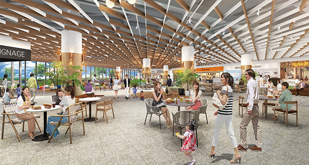 「そらくもひろば」からつながる屋内部分には7軒の個性豊かなレストランが並ぶ「そらくもダイニング」では、雨の日でも遊べる未就学児用のプレイエリアを設置し、レストランでテイクアウトしたフードやドリンクなどを楽しみながら、お子さまの様子を見守ることが出来るフリースペースを設けました。